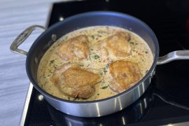 4. Meanwhile, add milk and heavy cream to a small saucepan and heat on low. You just want it warmed slightly.